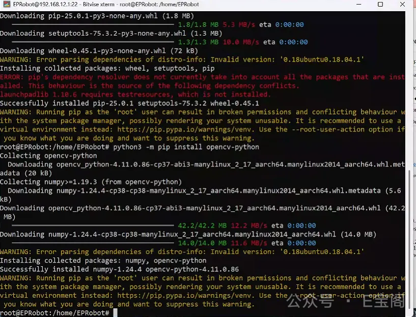 接着就是重头戏Python升级🐍。直接源码编译安装Python 3.8环境,顺手把opencv-python也安排上了👁️。虽然远程操作总是提心吊胆的,但好在一切顺利✨。